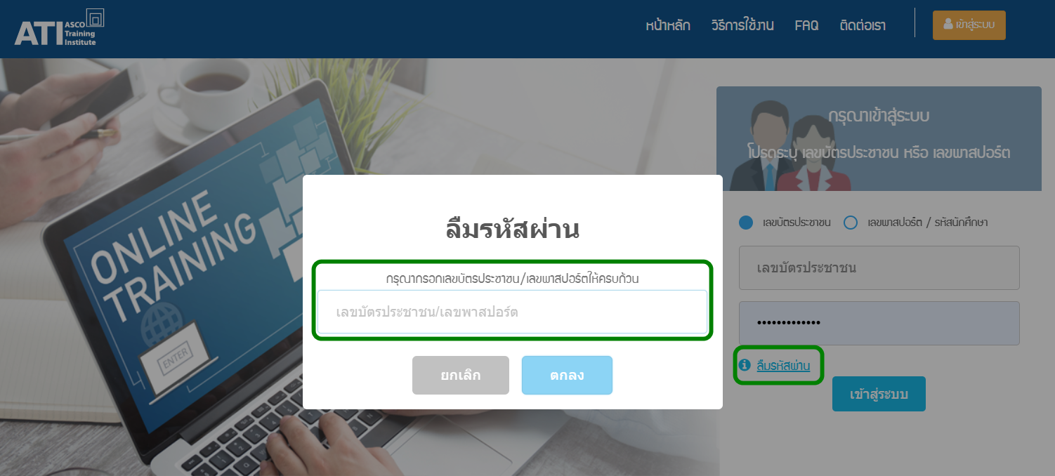 - คลิก “ลืมรหัสผ่าน” บนหน้าล็อกอิน https://el.ati-asco.org/site/index