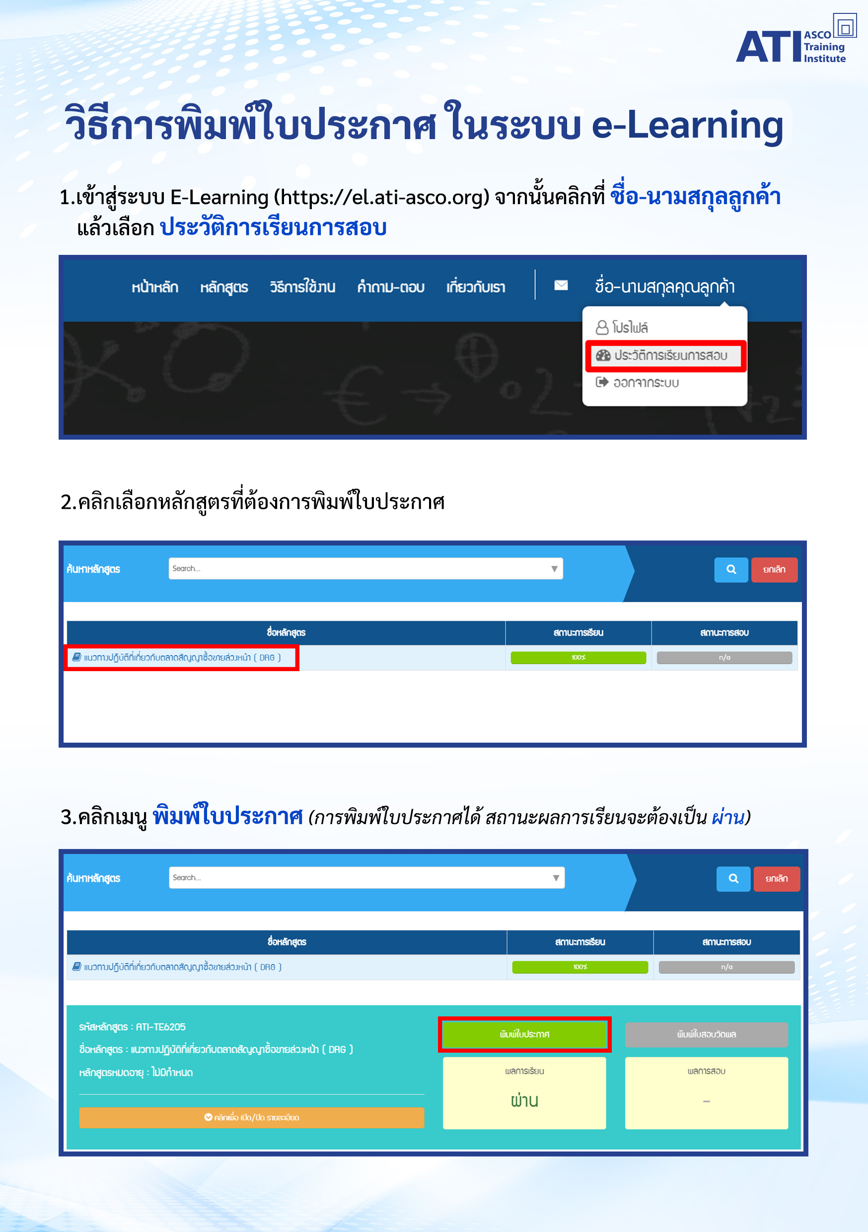 การเข้าสู่ระบบ e-Learning : https://el.ati-asco.org/site/index