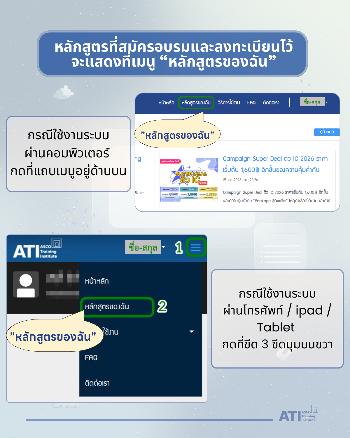 - สมัครอบรมผ่านระบบออนไลน์ได้ที่ https://register.ati-asco.org